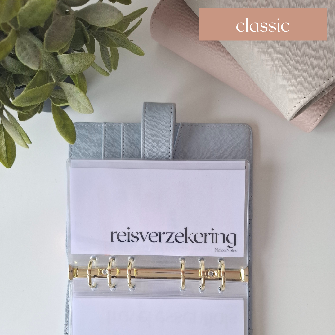 De Glossy Paper variant is geprint op papier en glanzend gelamineerd. Daardoor is dit insert niet transparant: je ziet geen geld of inhoud erdoorheen. Ideaal als je houdt van een strakke, glanzende look in je binder.