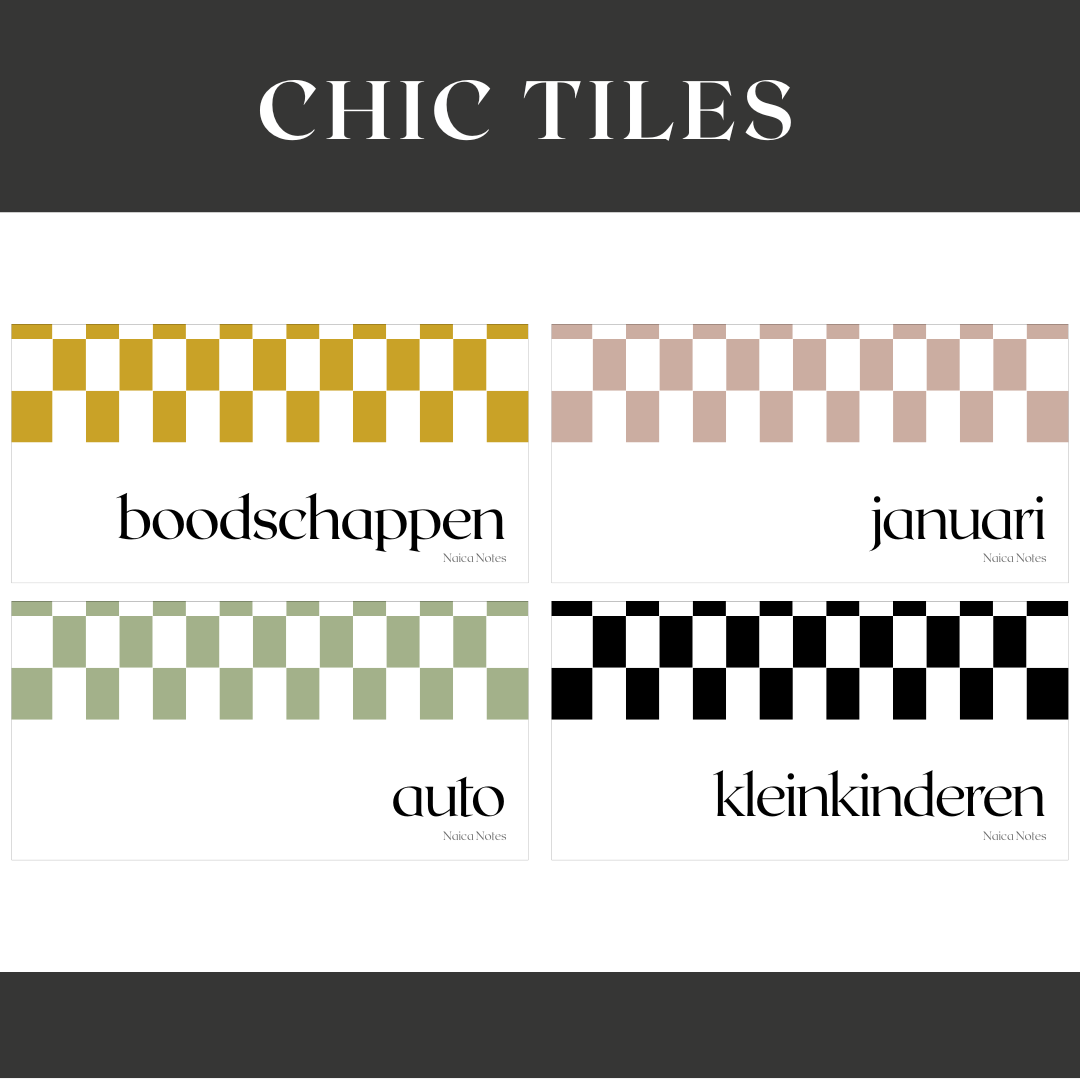 - Chic Tiles: Kleine tegels in zwart-wit, ideaal om te combineren met het Chic Tiles dashboard.