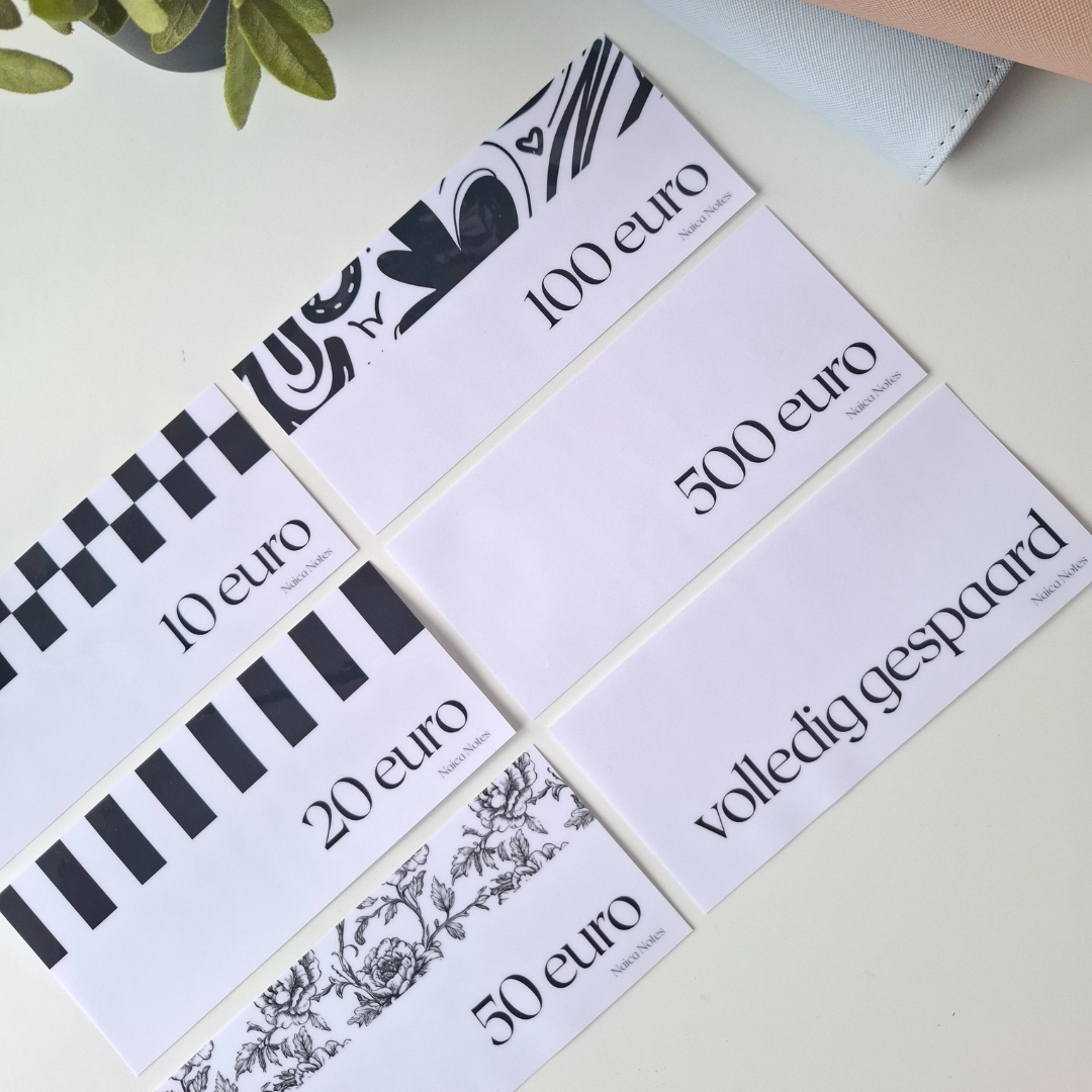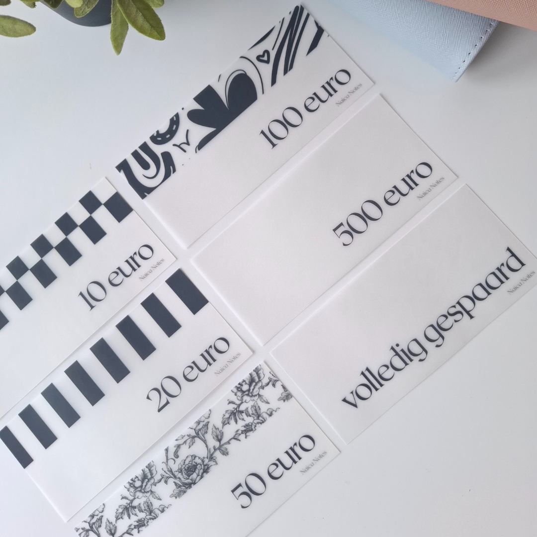 Deze stijlvolle placeholders laten zien hoeveel er al is gespaard, zonder dat er contant geld in je binder hoeft te zitten. Handig als je spaardoelen visueel bijhoudt en je vooruitgang in één oogopslag wilt zien groeien!