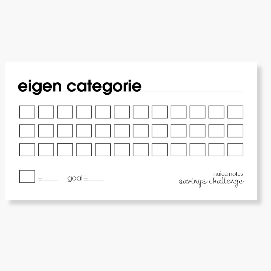Maak je cash stuffing ervaring extra uniek met gepersonaliseerde savings challenges! Laat weten waar jij voor wilt sparen, en ik maak een op maat gemaakte challenge die je spaardoelen perfect ondersteunt. Alles in een stijl die helemaal bij jou past.